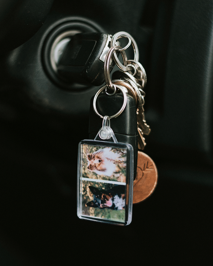 Do your pets mean the world to you? Ours sure do. Create a keyring with photos of your fur-covered family members that you can carry with you every day, like this acrylic keyring made by That Spaniel Bella.