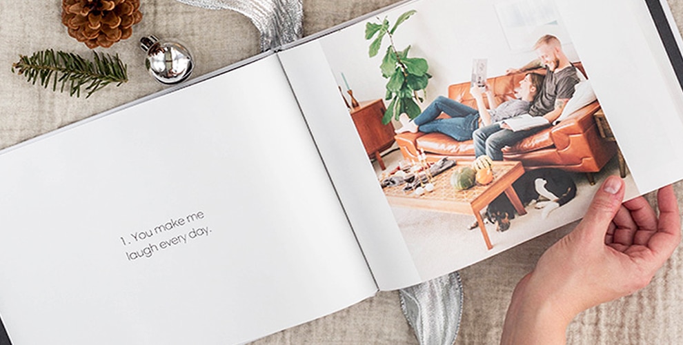 It feels so good to share our gratitude with one another. Is there someone extra special you’re thankful for? Tell them why with a photo book! We suggest making a 8×8″ Square Hardcover Layflat Photo Book or 11×8″ Landscape Hardcover Photo Book (A4) with space in it to share words of thanks like this “12 Reasons Why I Love You” book from Dream Green DIY.
