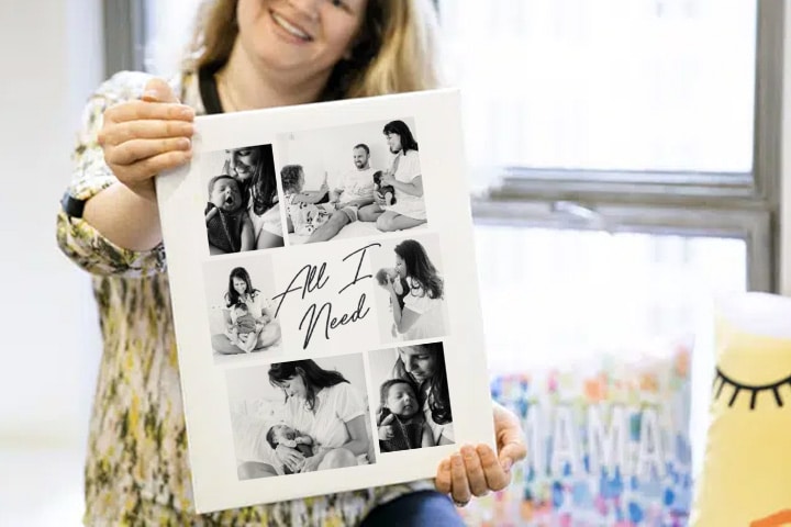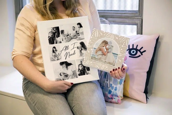Make Mum art from the heart, and celebrate all your fave family photos! Snapfish mama Annie models the 16×12″ Canvas Print.