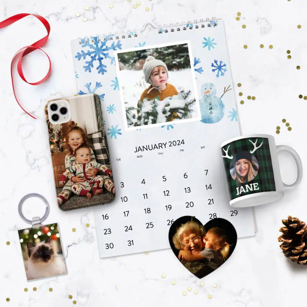 Think stunning wall art (canvas prints, photo panels and even re-stickable photo tiles for the recipient worried about wall damage.). Other heartfelt gifts include thoughtful photo books, personalised tins filled with Christmas biscuits and festive treats.