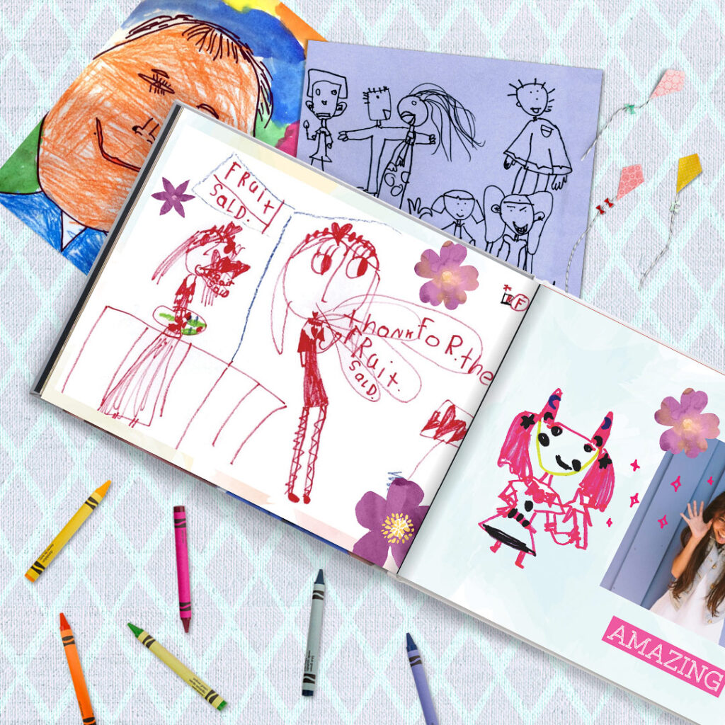 Create your very own book with their original artwork and your photos to enjoy with your little ones again and again.