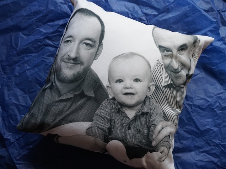“For the man who has everything already, what do you get? I’ve gone down the sentimental route and picked the Snapfish small photo cushion, which measures 12” x 12” … I chose this size as it is small and could be something that he takes away with him when he moves overseas soon and this particular picture as it was really important for him when Ethan was born to have a three generations photo with Ethan, hubs and himself.” – To Become Mum