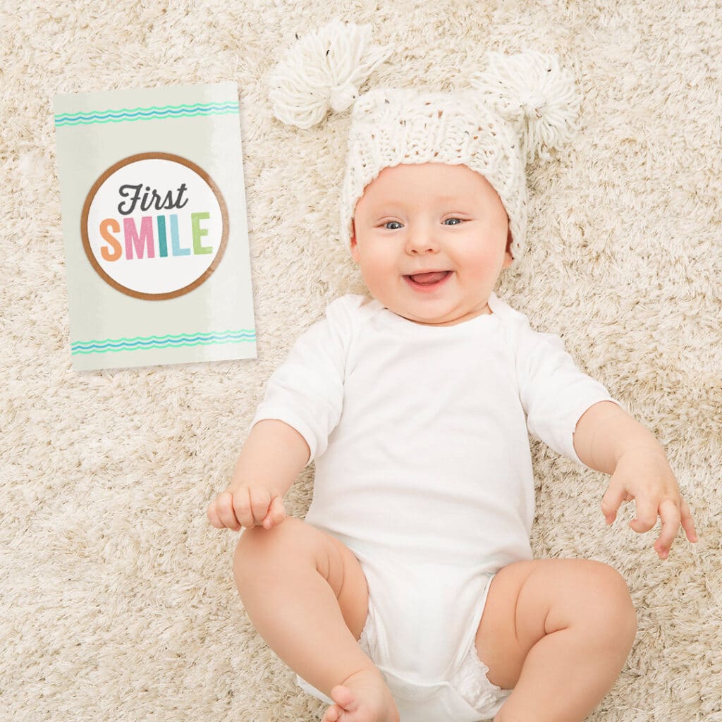 Baby Milestone cards are photo prints that you can create and then use to capture your baby’s first year in weeks, months and memorable moments. They are easy to create with Snapfish.